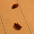 Although she got new furniture a year ago, we've turned it over and checked it carefully (thinking they might be powder post beetles), but nothing. There's no food of any kind stored in the living room, so if they're drugstore beetles, I can't figure out what they're burrowed in. They do appear in between the inner house window and storm window, but I can't really see any pinholes or burrowing.