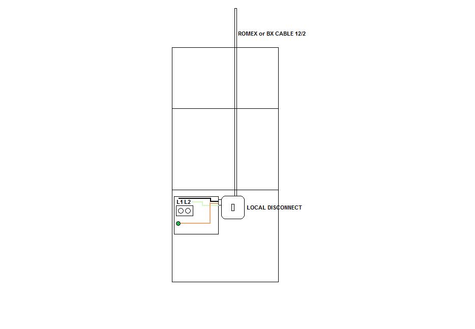 run a length of 12/2 romex with ground to the furnace. install a local shut off switch in a 4x4x 1 1/2 inch square junction box with a 1/2 inch raised switch cover. use the T rated switch. black line to the upper screw on the switch, load off the bottom screw on the switch. just wirenut the white neutrals together.
