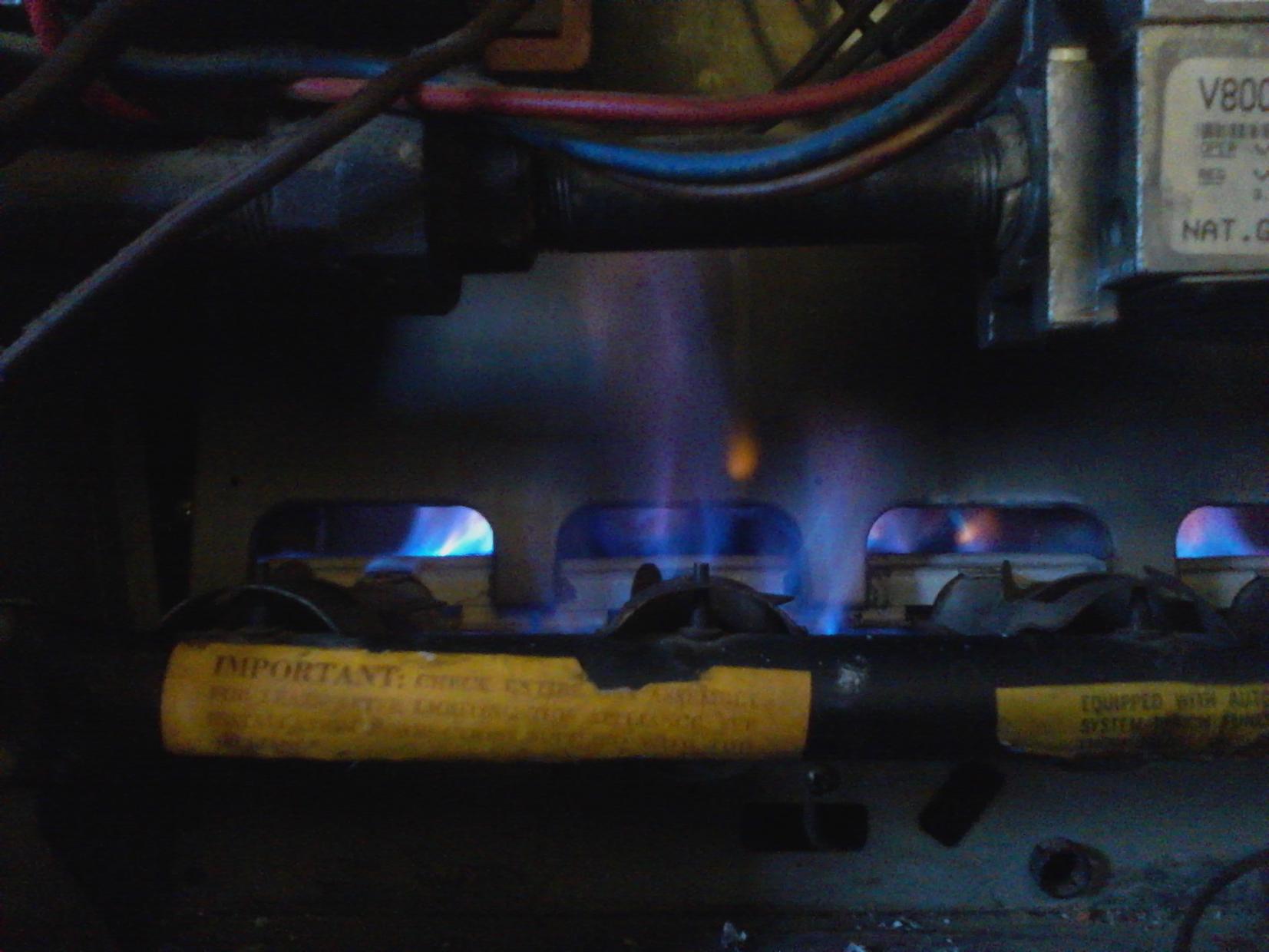 first off i don't know a whole lot about heating and air and this is alittle hard to explain so please bear with me my furnace work's and everything but when i kick it on the flame's are on top of the burner's but on to of the burner's the flame will wrap all the way around the burner's starting at the back and slowly work there way to the front then the flame on these two come up over this plate where they start to burn wire's and stuff nothing has been burnt yet as i caught this in time but if i let it go i will have big problem's i pulled the burn's out and cleaned them thinking this would solve the problem but it did not i'm tring to avoid calling a repair man as they are very pricey so this is my last resort before i do so any help would be great thank you
