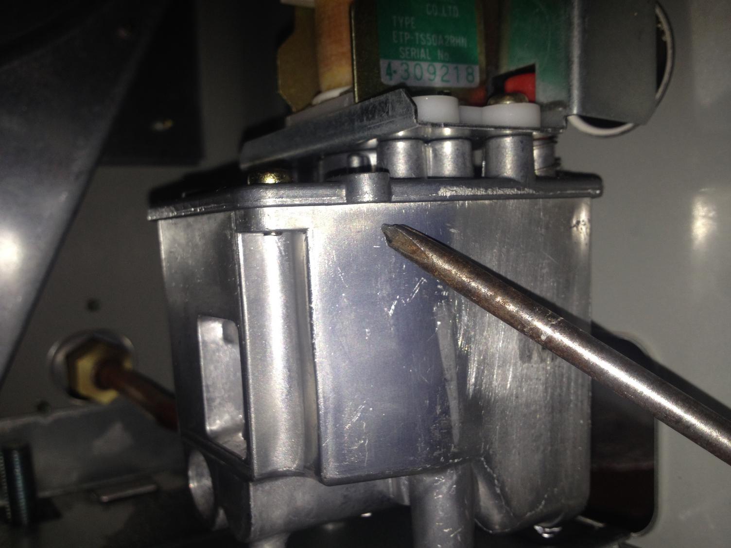now put everything back together and refasten the sump to the heater. replace and tighten the gland nut and fuel pipe. press the red button once. this resets the float. establish your fuel flow and see if it stops.