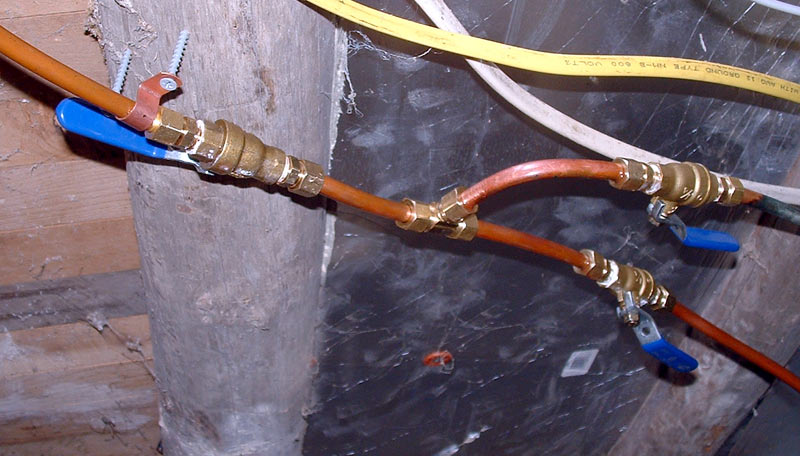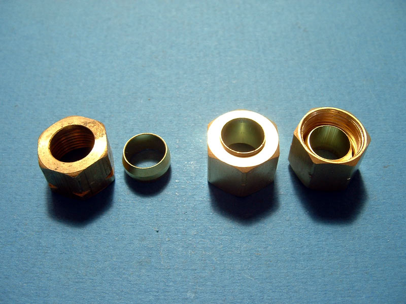 I purchased the "tee", ball valve shutoffs and couplers from Lowes. The 3/8" ball valves had adapters added for compression fittings. All the compression fittings were the new style "captured" ferrule type compression fittings. When I plumbed the Laser 73, I used the old style nuts with loose ferrules with no troubles.