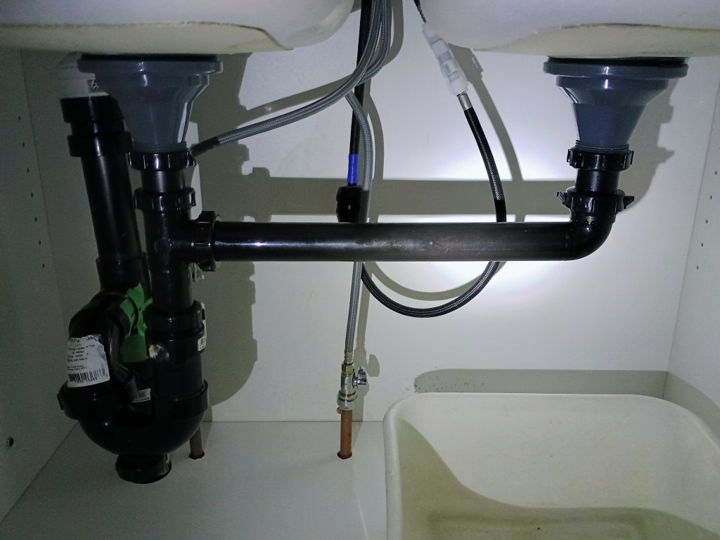 I was having a problem with my kitchen sinks draining properly. I realized that my pipe configuration was incorrect when I started looking up videos on YouTube, and that was likely contributing to the problem. So, I pulled it all out and re-configured it yesterday.