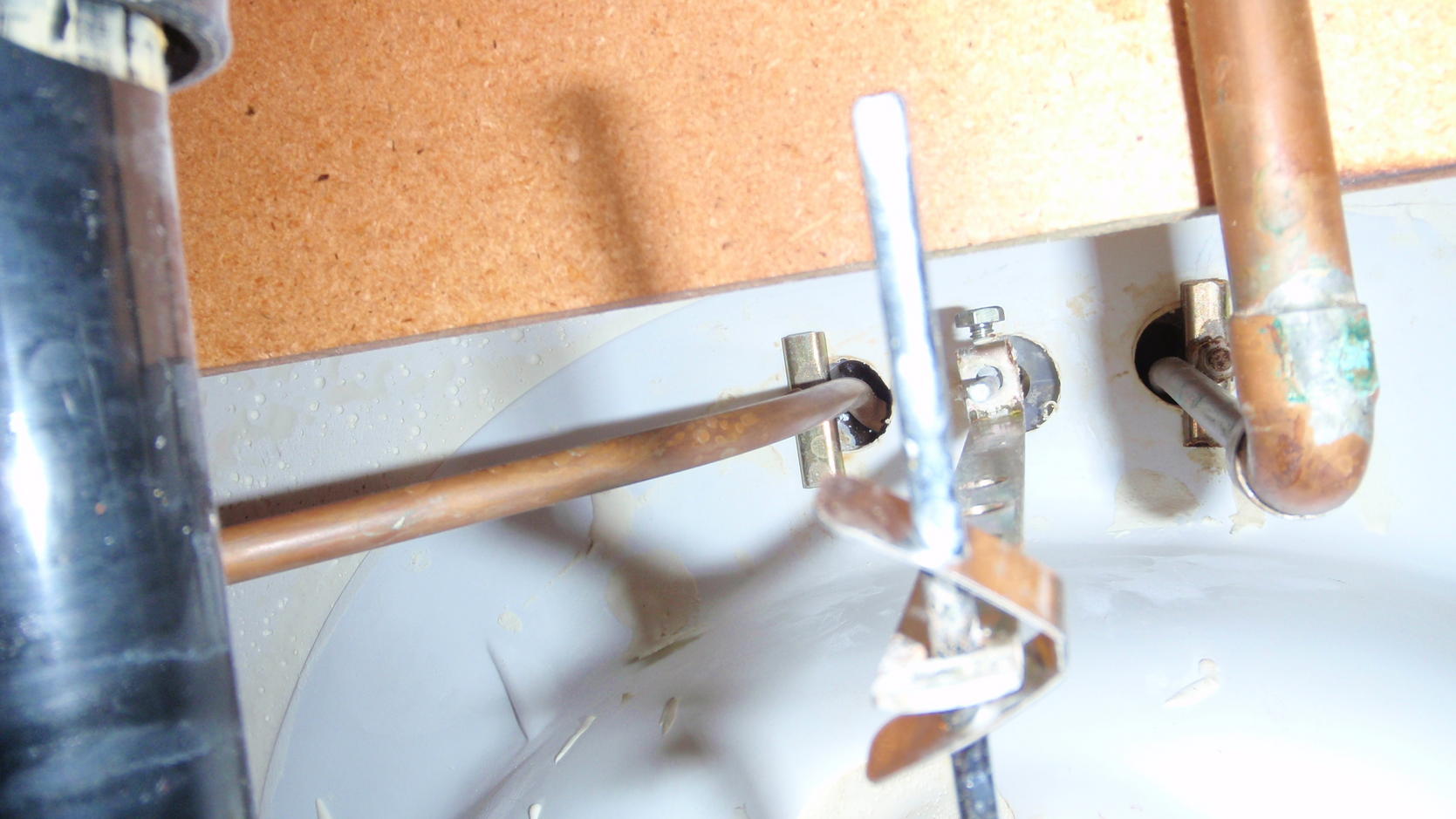 This is a view from under the sink. You may also notice that there are no stopsClick image for larger version
