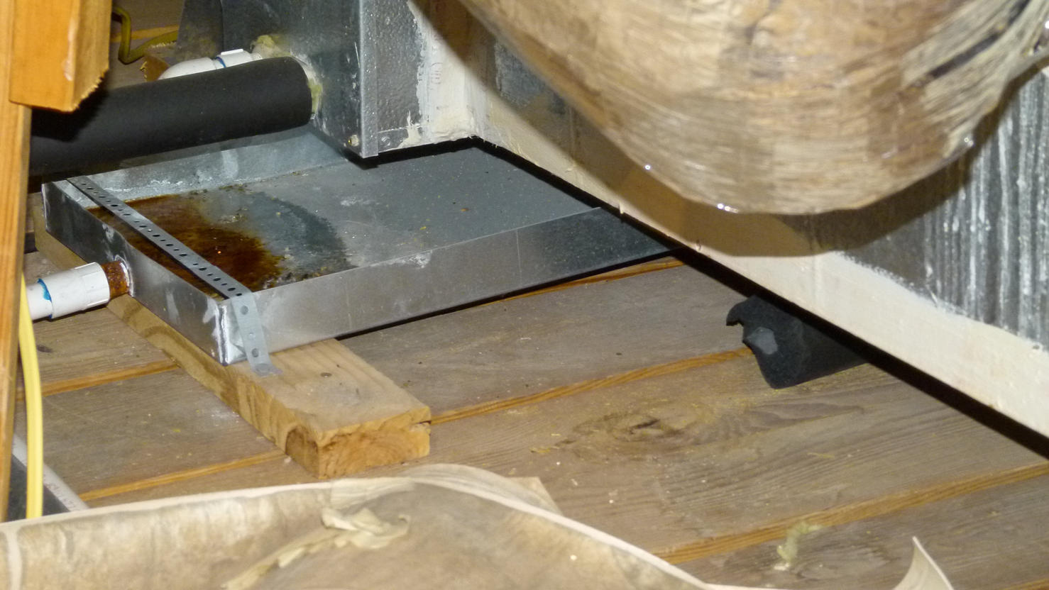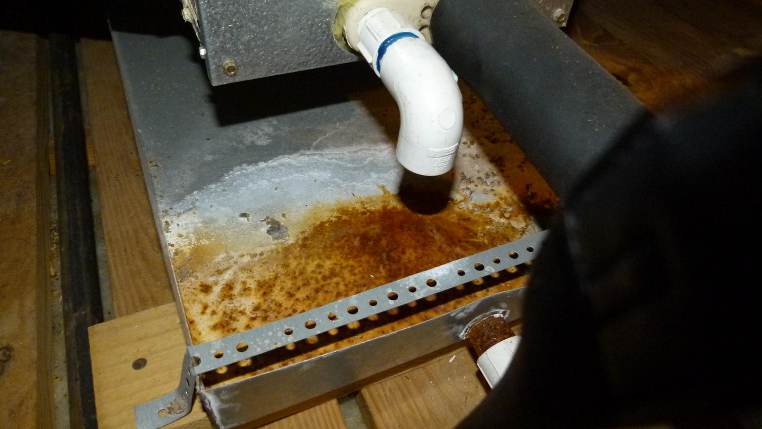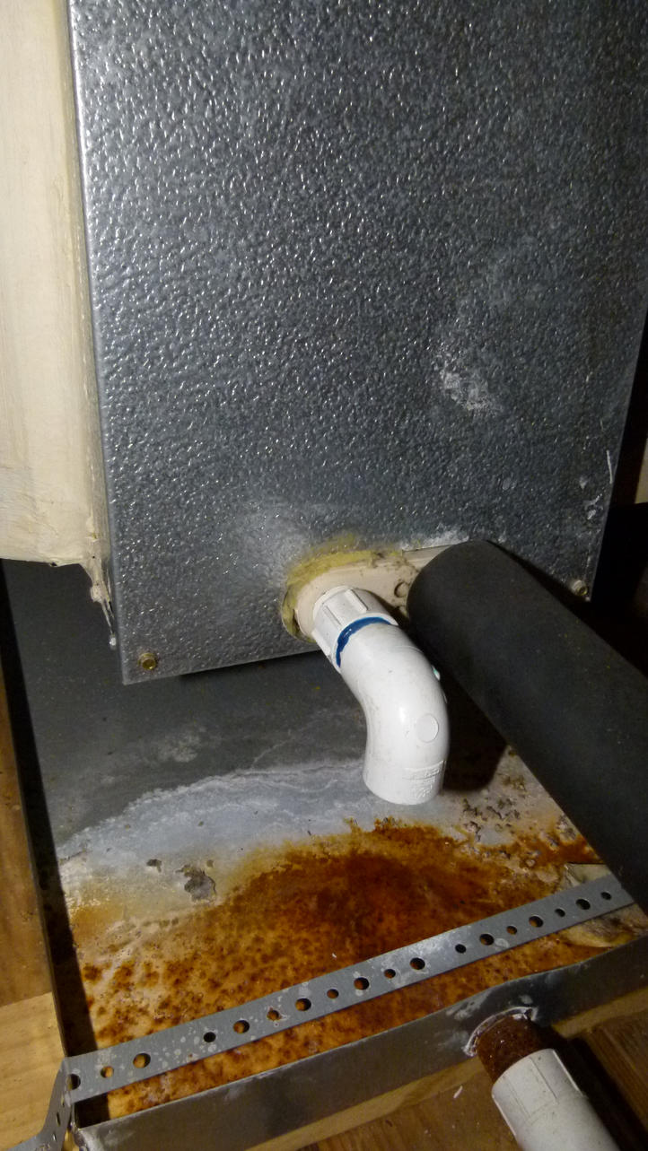 If look at the pictures you will see excessive water dripping out a small pipe on the side of my house. Someone told me it can be the pan for my water heater or the A/C. Both pans in each A/C Unit I have in the atic are empty. I dont know where the water heater pans are. The Water dripping out is cold also. Check out the pictures.