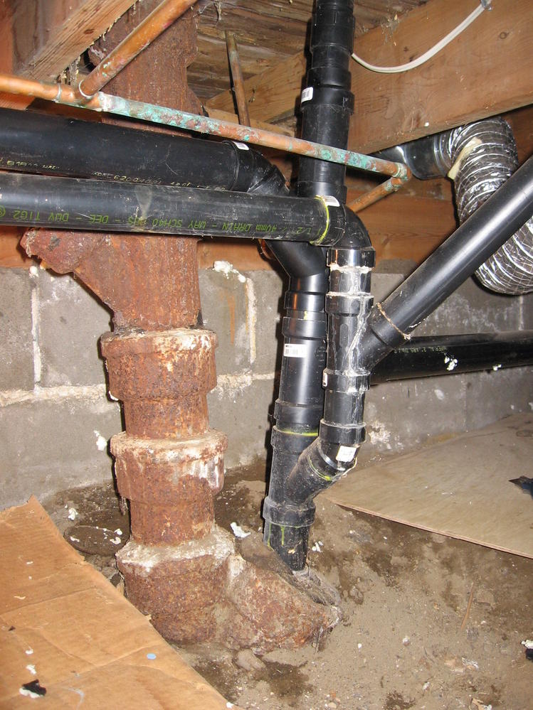 My question for this is...How do I reseal the vent pipe/cast "T"connection? Since the vent pipe is loosened from its seal, should I remove it to see if it is indeed clogged? Is it possible to remove all the mastic and fit in a new ABS fitting and then run a new ABS vent pipe?