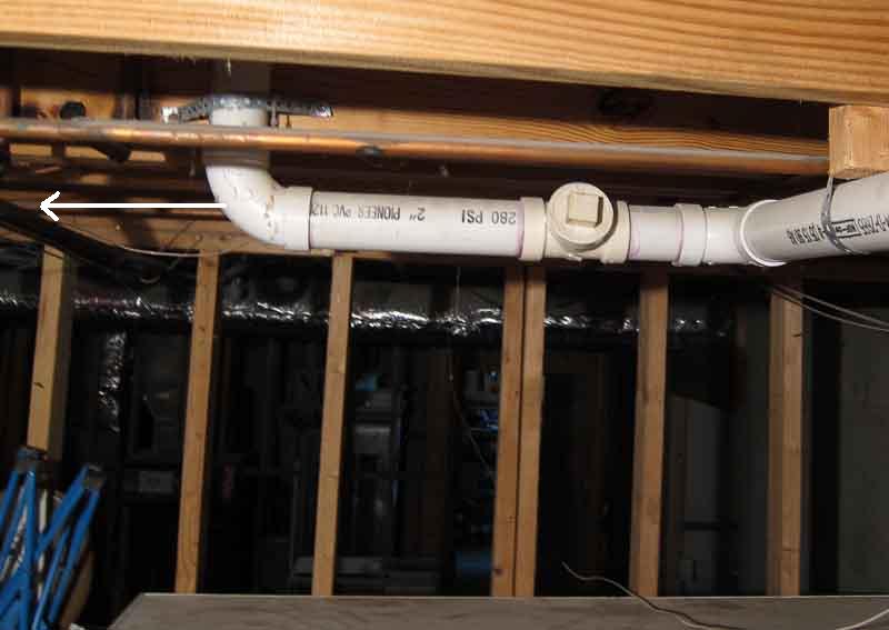 I'm doing a bath remodel and want to move a drain and supplies to the center of the new vanity. It is a first floor room with an unfinished basement below and easy access to all existing fittings. The supplies are no problem. It's the drain/vent that concerns me. Red arrow shows approx. location of new drain line.