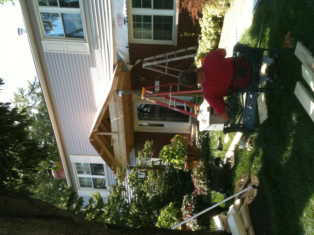 I have a back door that I would like to build a roofed overhang above it. I have a basic idea but am open to other alternatives.