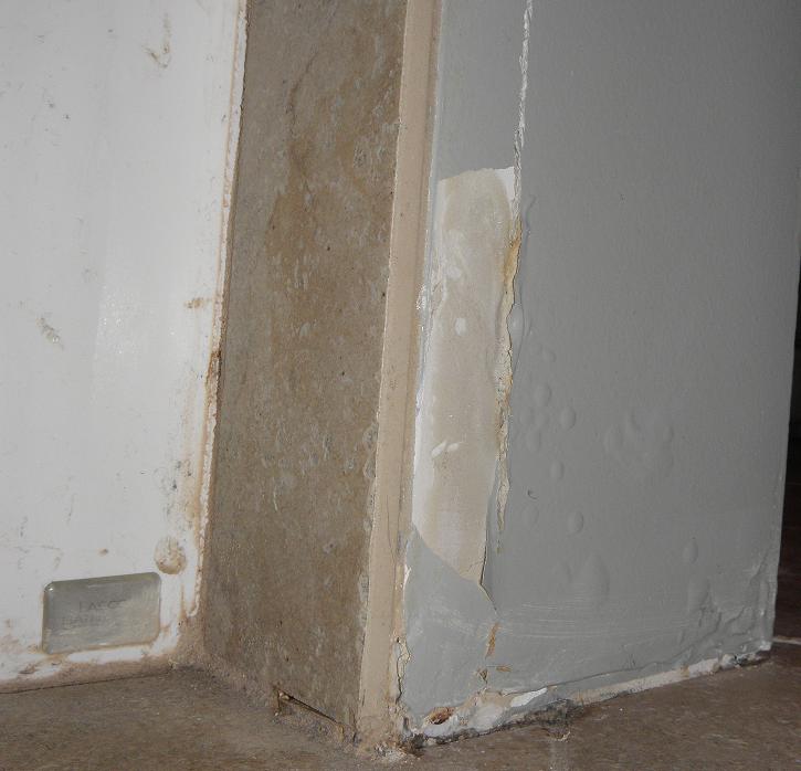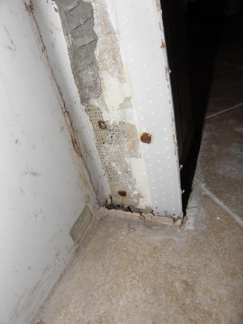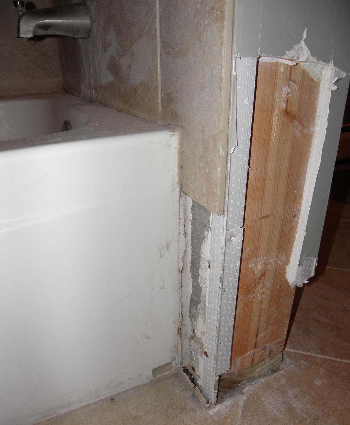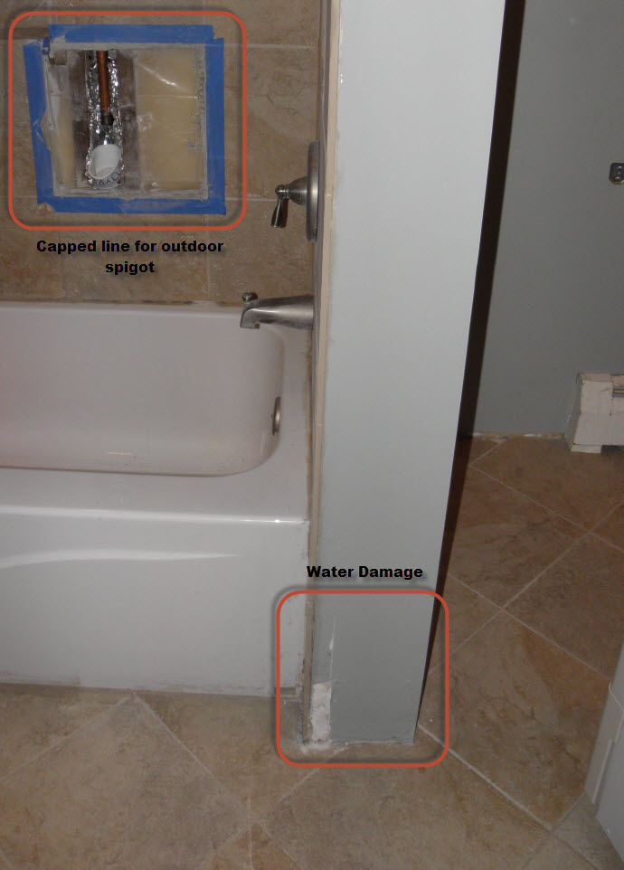 Water issue in bathroom at base of the tub and shower plumbing wall