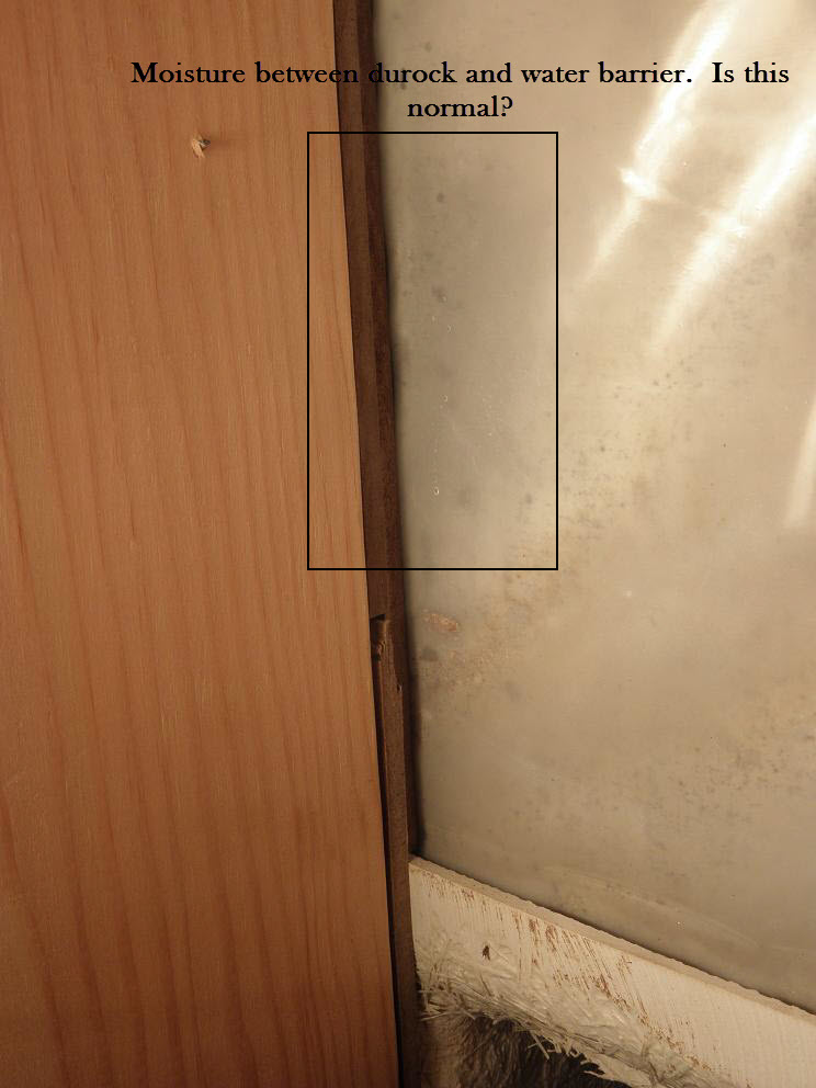 I am troubleshooting a water issue and I am looking for ideas on how to identify the source of a water leak.I remodeled my basement bathroom February 2009. I had a room mate living in the basement and he used the shower on a regular basis. I however did not use that bathroom. Water issues started to appear mid 2011. The first signs I noticed were bubbling paint. I noticed small gaps in the caulk between the tub and the tile and assumed that to be the cause. I removed the caulk, setup a fan and dehumidifier. The bathroom dried out for a full week before I replaced the caulk. I waited another week before allowing use of the bathroom. The bubbling paint returned within a few weeks and seemed to worsen more rapidly this time. Now I suspected there was a leak inside the wall. I had a outdoor spigot that leaked when in use that was located in the block wall behind the shower wall. I had long since stopped using the spigot but I suspected that was the source. I opened up the wall to view the plumbing for the shower. It appeared that the water was not coming from that spigot. What I saw confused me even more.Just to be sure I fixed the spigot behind the shower wall by capping it off completely. My room mate has since moved out and the paint still appears to be bubbled out. I now suspect a small leak that is accumulating between the durock and tile and running down the front of the tub and soaking into the base of the wall. I have tried running the shower for ten minutes straight and I don't see any leaks anywhere. There is no immediate moisture build up. The shower has not been in use for a few months now and the bathroom still smells musty. As for further troubleshooting I am stumped. Can anyone suggest some troubleshooting steps to take next?I have attached various pictures to help show what is going on.I noticed moistrue at the base of the shower wall inside the wall. After setting up a fan and dehumidifier the moisture has not returned but the paint is still bubbled out.Also there appears to be some droppings of some kind inside the wall, this seems strange. Any ideas what these are from?I have many more pictures but didn't have time to post every single one. Any ideas or advice would be appreciated! As a side note I tried formatting this post better but for some reason it keeps dropping my line breaks.