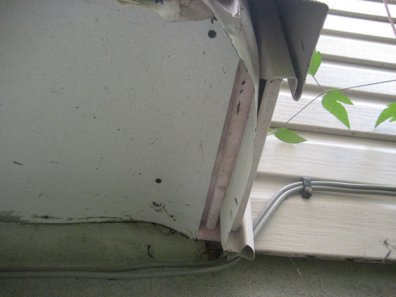 I recently purchased a new home and the inspector mentioned I should have some covering placed on the underside of a section of my exterior. That is vague I know, so I have attached some photos showing the exterior I am speaking of, and the underside which is exposed without any covering. I believe I was told to cover it with a 'j-strip' or something along those lines. Any ideas?