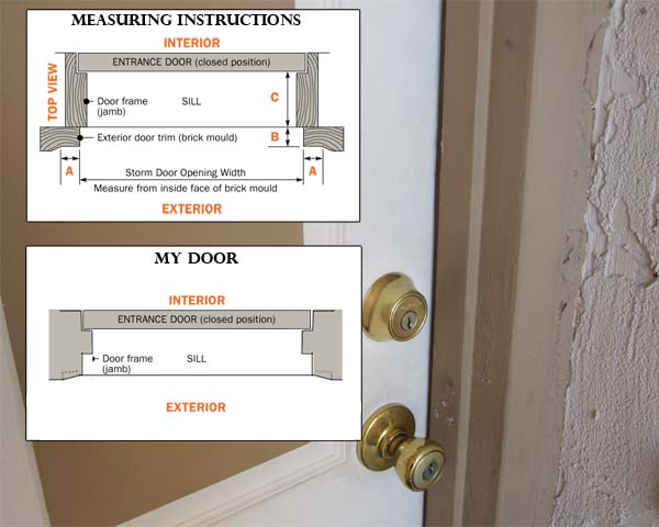 I've picked out a storm door (from anderson) but I'm not sure how I'm going to install it. Before I buy it, I need some advice. My door frame doesn't match the measuring instructions. Specifically, the casing is metal and the exterior of the house is stucco. The stucco comes flush with the outter edge of the casing and I have no brick mould. You can see in one of the photos, the measuring instructions compared to the actual shape of my door frame.