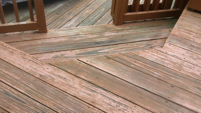 Please see photos for a clear idea of what the deck currently looks like (and condition of stain). Maybe someone can tell what type of stain it is.