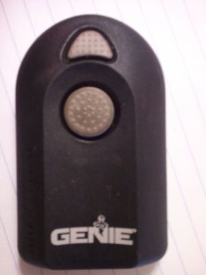 If you have a Genie as in the pictures in the first post of this thread. Look @ the second picture and you can see the dip-switches on the left behind the light bulb. You will need a Genie GT912-1BL 9/12 Switch Remote or Liftmaster 375LM Remote Clicker Universal Remote